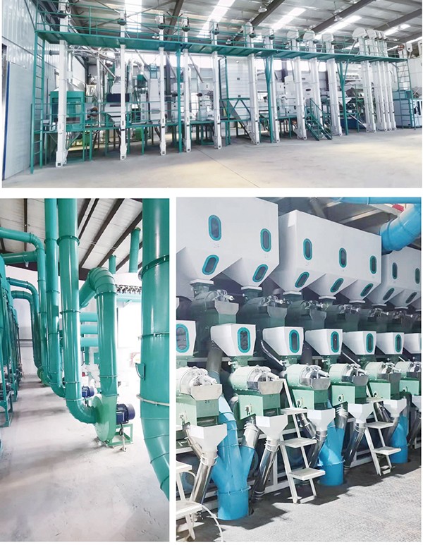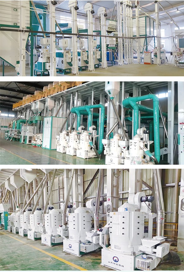 The series equipment consists of advanced equipment such as bucket elevator, screening and selecting machine, specific gravity stone cleaner, rubber roller rice huller (pneumatic), specific gravity paddy separator, rice mill with blowing wind, rice sorter,Color sorter, polishing, quantity scale and packaging and so on. Its structure is tight, function is completed and it is easy to operate. This machine can complete work from feeding the paddy to packing the finished rice, It has such virtues as follows: large capacity, fine quality rice, high rate of gaining rice, less broken rice, low energy consumption, etc.